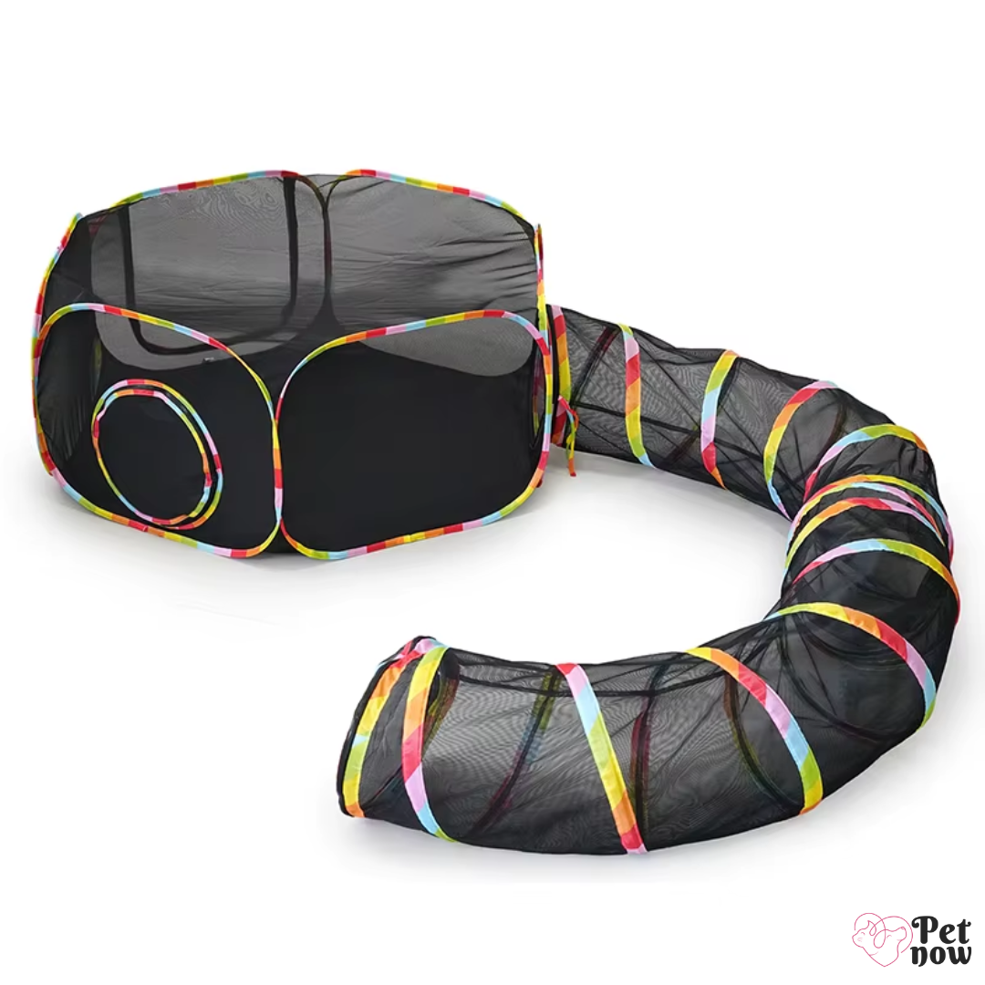 Pensando nisso, apresentamos o Túnel Portátil com Barraca para Gatos: um brinquedo inteligente, dobrável, fácil de montar e transportar, ideal para manter seu gato entretido em qualquer ambiente.