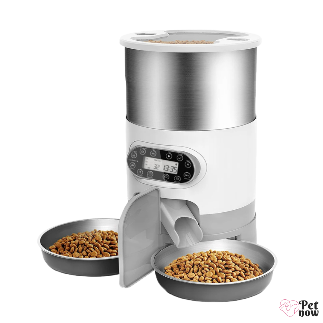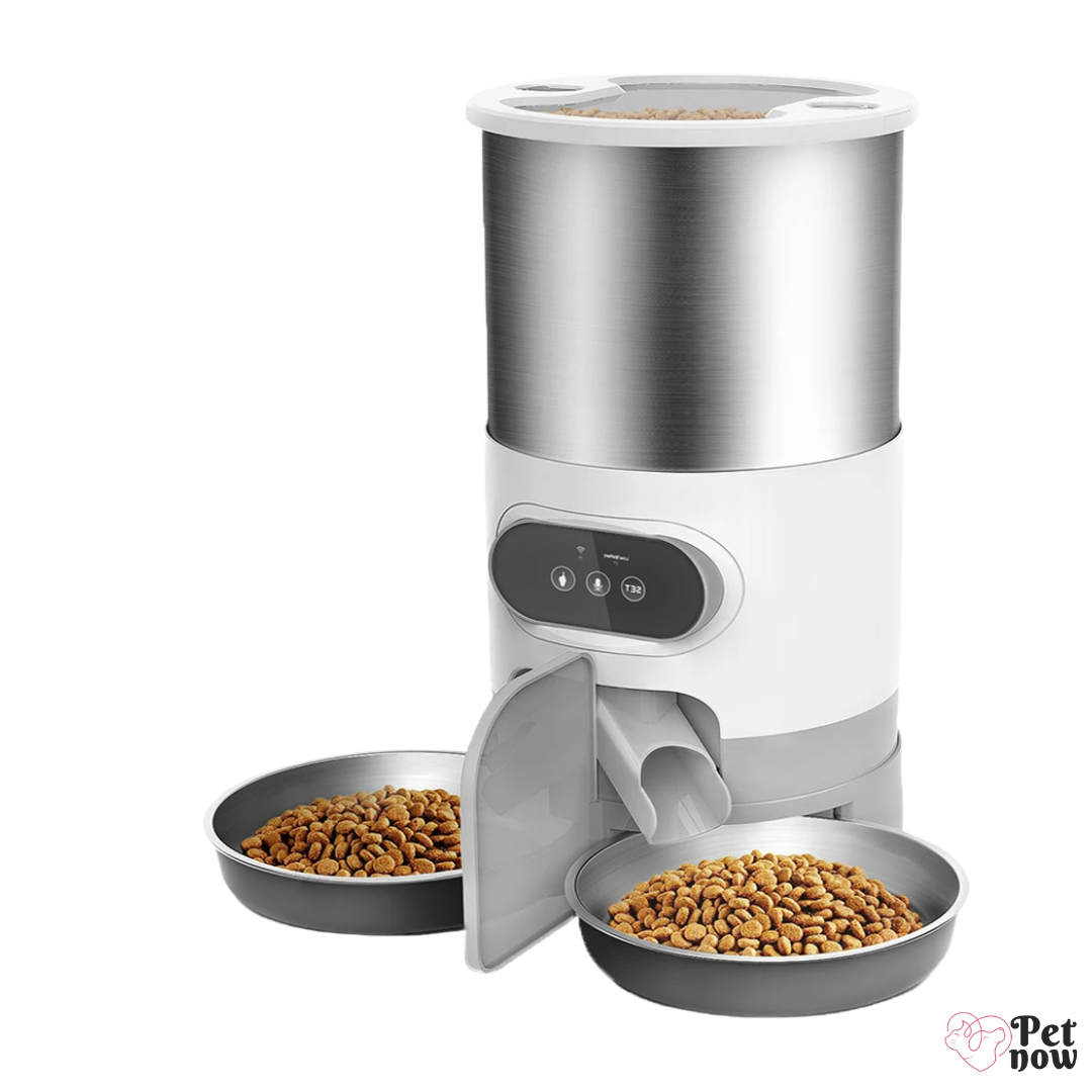 • Tigela Dupla 3L - Controle por Botão: Duas tigelas com controle manual para diferentes tipos de ração.